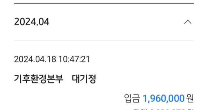 9) 4월 18일 조기폐차지원금 50% 196만 원 입금 받음(기후환경본부)