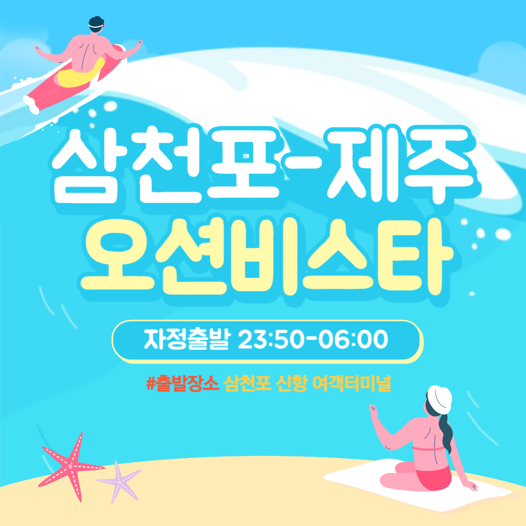 | 삼천포항(오션비스타) | 운행정보(일~금) 23:50~06:00(5시간50분) |