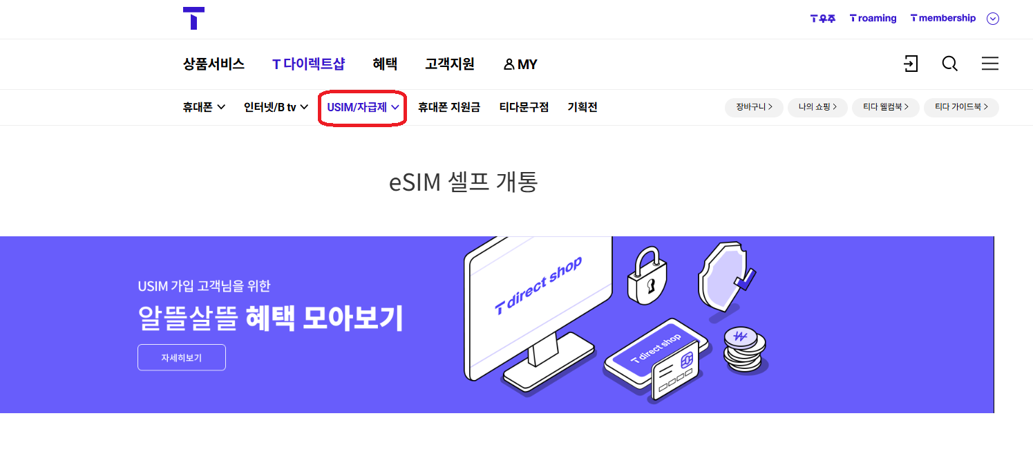 1.SKT의 [T디렉트샵] 접속합니다.